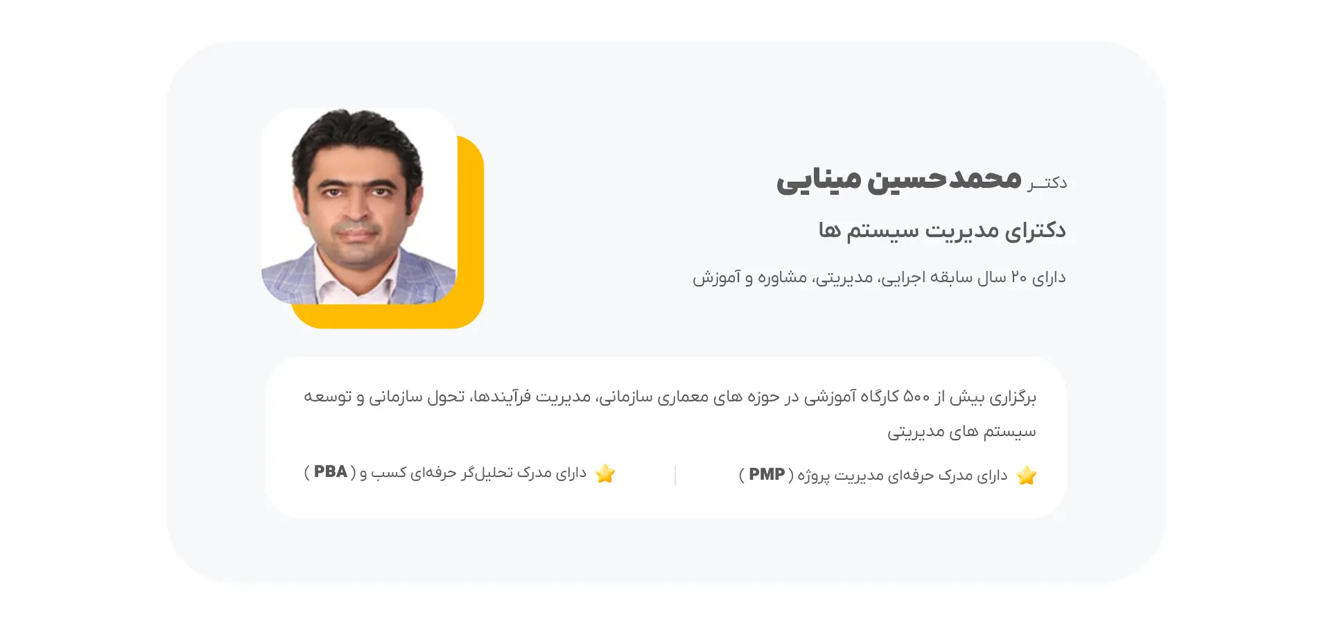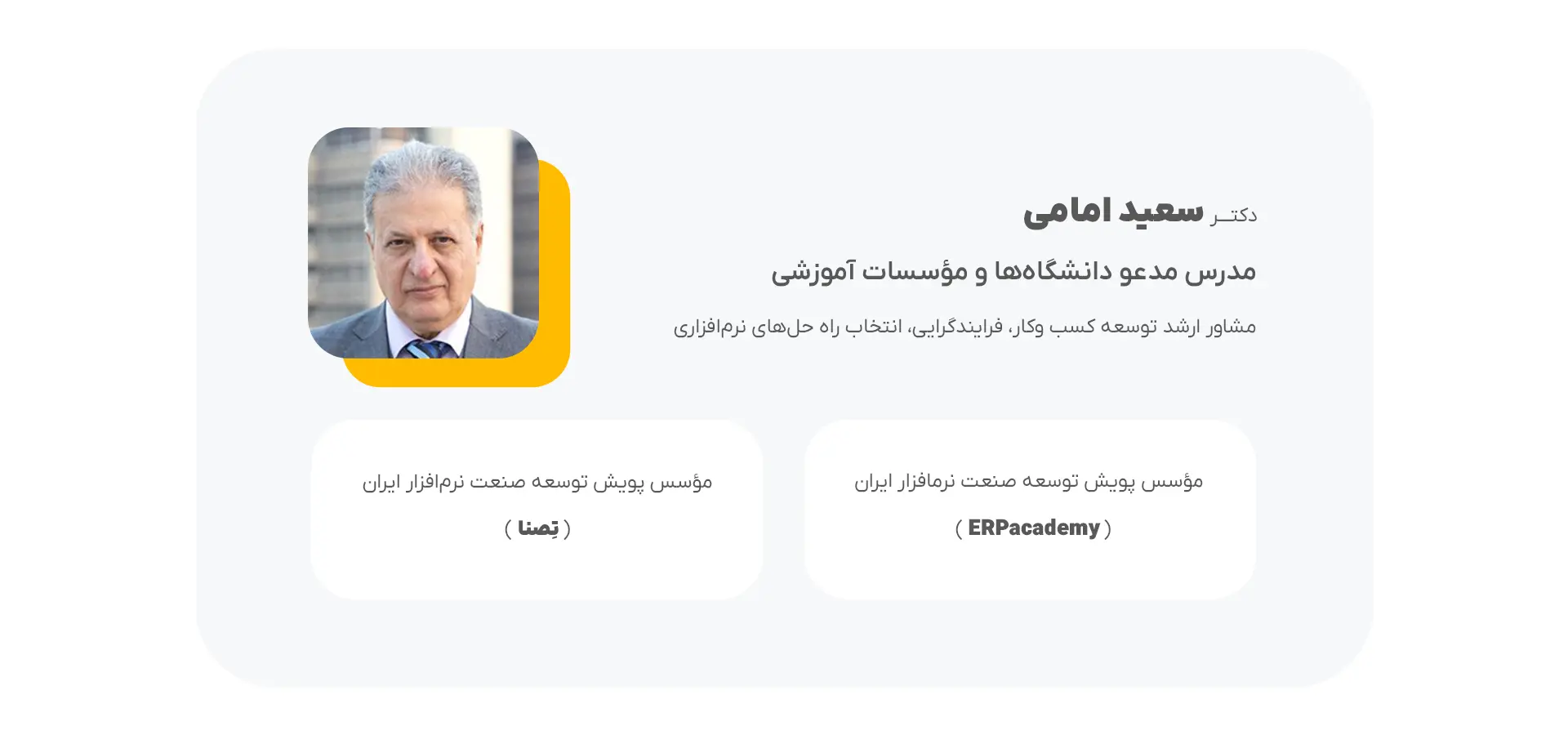 سخنرانان این دوره آقای دکتر سعید امامی ( مشاور ارشد توسعه کسب و کار ، فرایندگرایی ، انتخاب راه‌حل های نرم‌افزاری) و دکتر محمد حسین مینایی ( دارای 20 سال سابقه اجرایی ، مدیریتی ، مشاوره و آموزش )