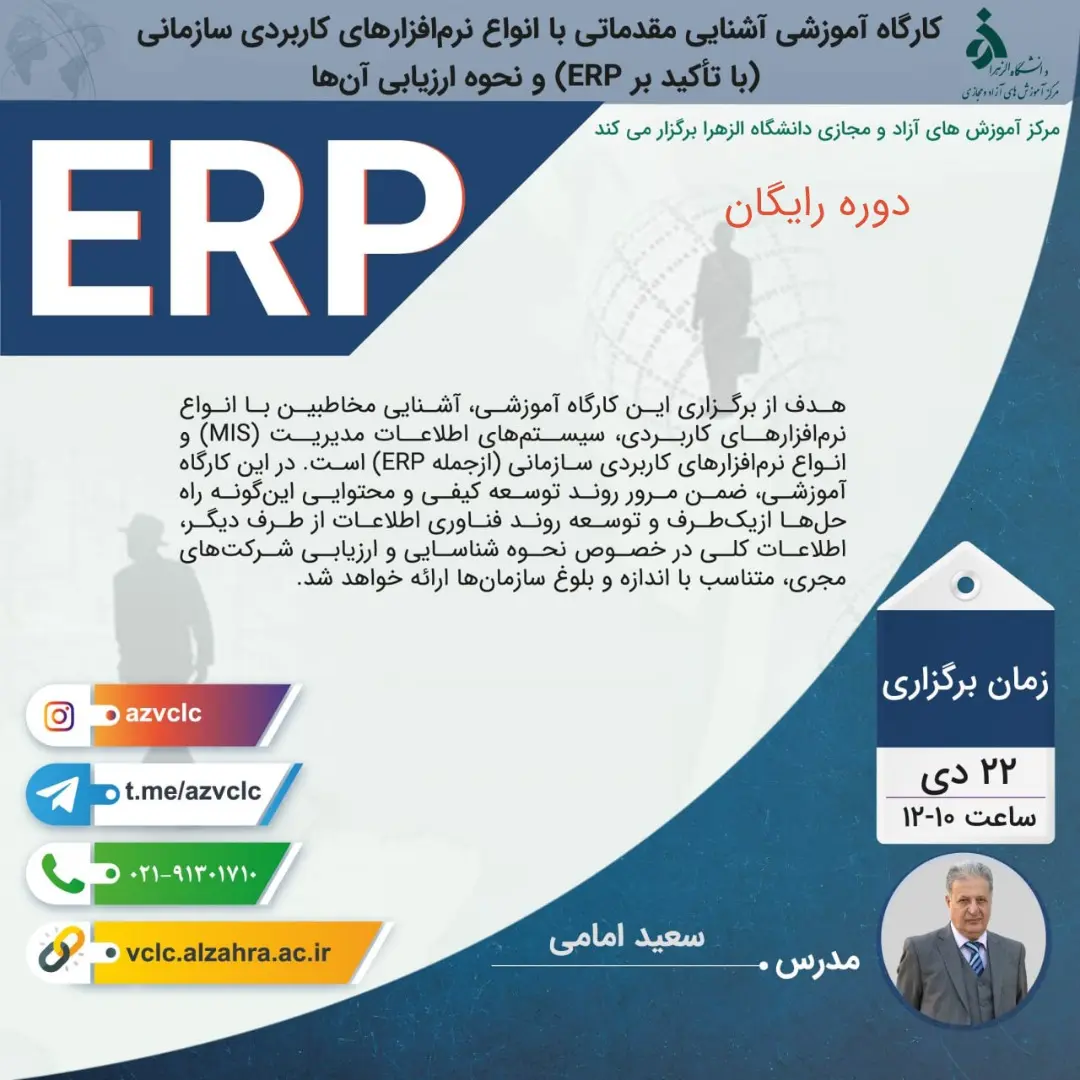 کارگاه آموزشی آشنایی مقدماتی با انواع نرمافزارهای کاربردی سازمانی (با تأکید بر ERP) و نحوه ارزیابی آنها